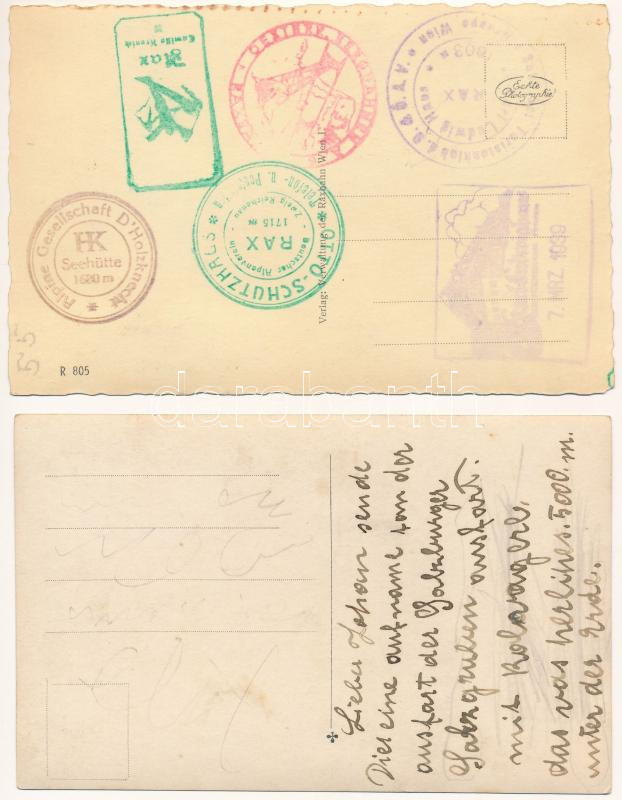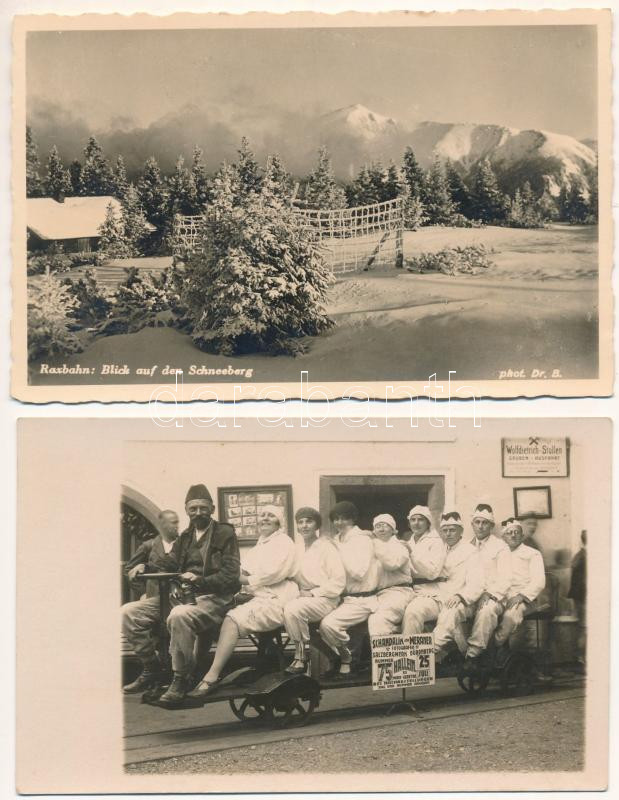 AUSZTRIA - 2 db RÉGI képeslap, közte 1 fotó: Dürnberg bányavasút, Schneeberg Raxbahn / AUSTRIA - 2 pre-1945 postcards, with 1 photo: mine railway, mountain in winter