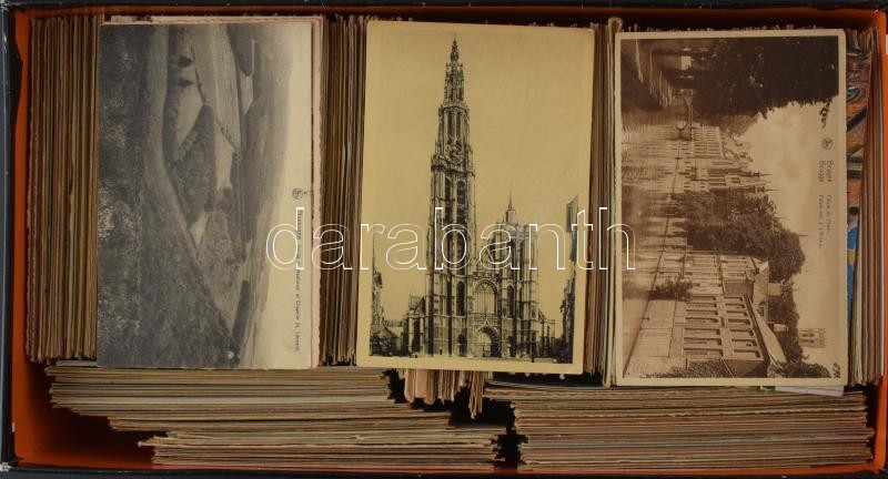 Leírás: BELGIUM - Kb. 1000 db RÉGI belga város képeslap egy dobozban / BELGIUM - Cca. 1000 pre-1945 town-view postcards in a box