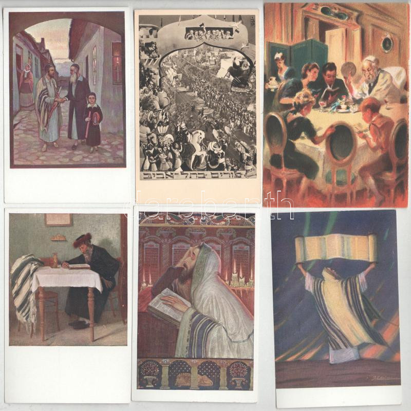 JUDAIKA - 40 db főleg régi használatlan képeslap, közte modernek is és 2 antiszemita cédula / JUDAICA - 40 mostly pre-1945 unused postcards, including some modern ones and 2 antisemitic labels