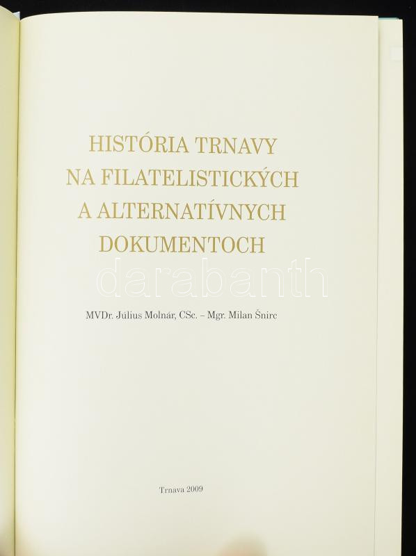 [Nagyszombat története] Julius Molnár- Milan Snirc: História trnavy na filetlistikych a alternativnych dokumentoch . Trnavy, 2009. 267p. Kiadói kartonált papírkötésben Szlovák nyelven