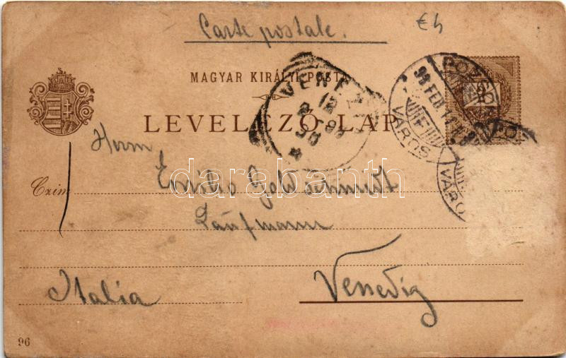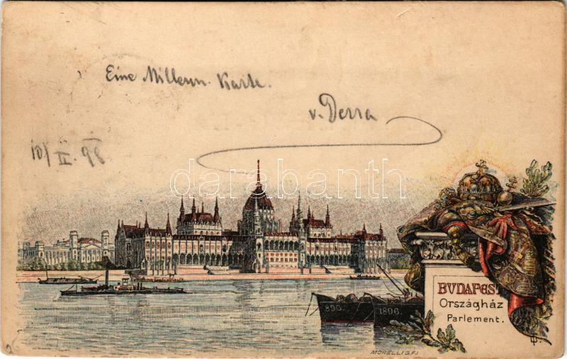 Leírás: 1898 (Vorläufer) Budapest V. Ezredéves Országos Kiállítás, Országház, Parlament. barna 2 Kr. Ga. s: Dörre T., Morelli (fl)