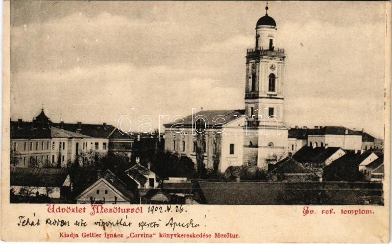 Leírás: 1902 Mezőtúr, Református templom. Gettler Ignác kiadása (fl)