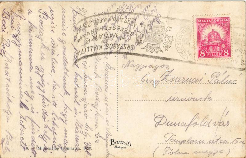 Leírás: 1927 Székesfehérvár, Vértanúk szobra + "Országos Kiállítás és Vásár Székesfehérvár 1927. aug. 13-tól 28-ig" So. Stpl. (fl)