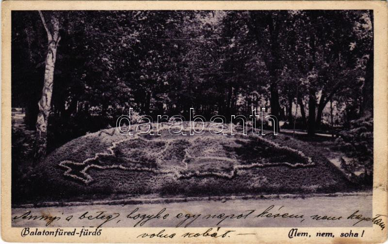 Leírás: 1931 Balatonfüred, Irredenta virágágy "Nem, nem, soha!" (EK)