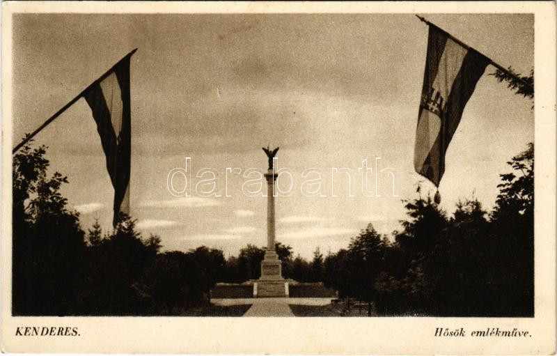 1941 Kenderes, Hősök emlékműve, magyar zászlók. Foto Várkonyi Studio (... https://www.darabanth.com/hu/504-Gyorsarveres/504.0/Kepeslapok/Magyarorszag~2000001/1941-Kenderes-Hosok-emlekmuve-magyar-zaszlok-Foto-Varkonyi-Studio-fl~II3420981