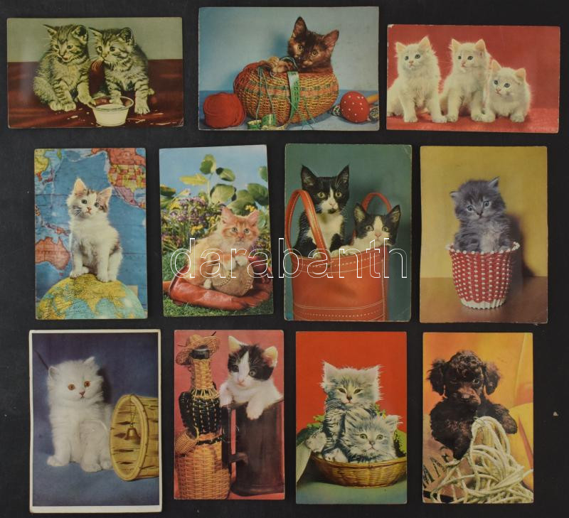 Leírás: cca 1970 11 db MODERN megnyomható, síró macskás képeslap