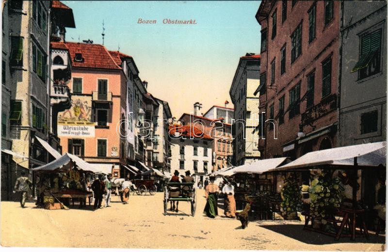 Leírás: 1908 Bolzano, Bozen (Südtirol); Obstmarkt, Weinstube / fruti market, wine hall