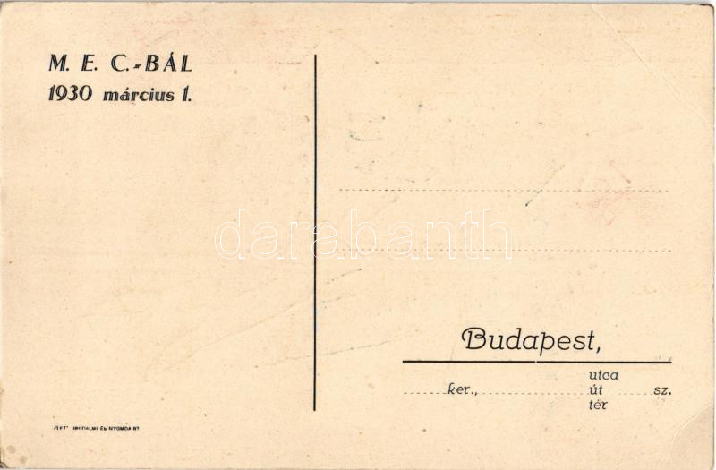 Leírás: M.E.C. Bál 1930. március 1. (Műegyetemi Evezős Club) / Hungarian rowing club's ball advertisement s: Nemes (EB)