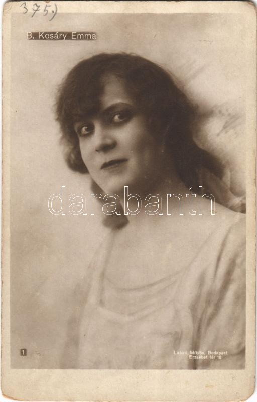 B. Kosáry Emma. Labori Miklós felvétele (EM) https://www.darabanth.com/hu/504-Gyorsarveres/504.0/Kepeslapok/Szinesz~2000078/B-Kosary-Emma-Labori-Miklos-felvetele-EM~II2405726