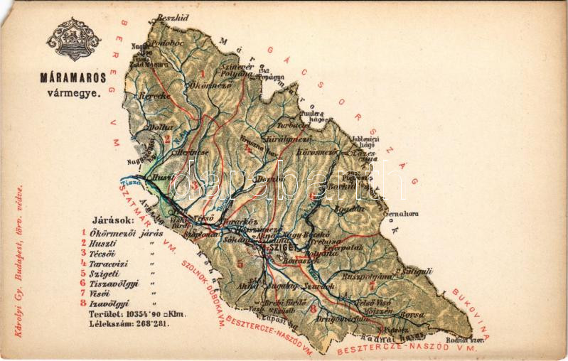 Máramaros vármegye térképe. Károlyi Gy. kiadása / Map of Maramures cou... https://www.darabanth.com/hu/504-Gyorsarveres/504.0/Kepeslapok/Terkep~2000079/Maramaros-varmegye-terkepe-Karolyi-Gy-kiadasa-Map-of-Maramures-county-EM~II3332880