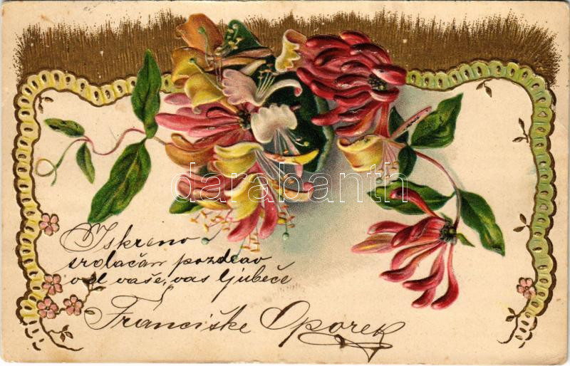 Leírás: 1901 Szecessziós dombornyomott üdvözlőlap / Art Nouveau, embossed litho greeting card (EB)