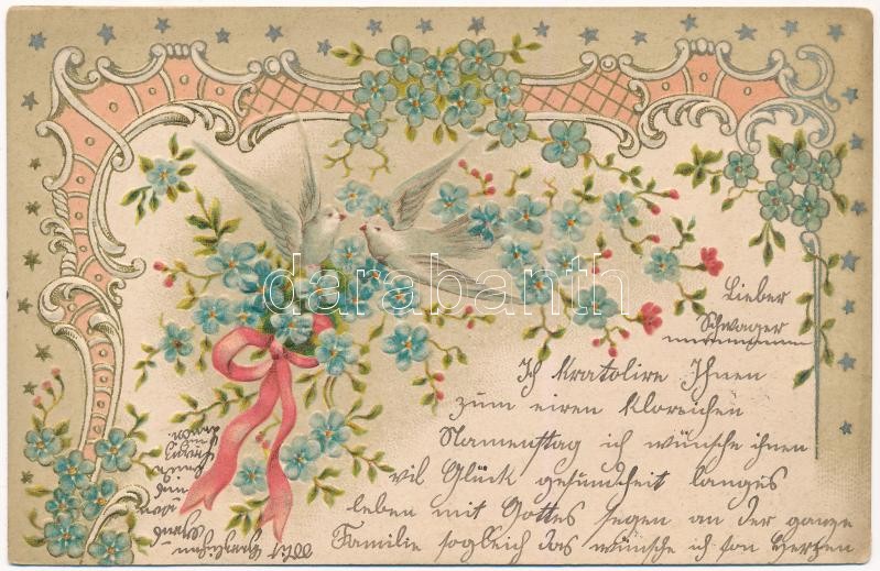 Leírás: 1902 Csipke hatású dombornyomott virágos litho üdvözlőlap / Lace style ermbossed litho greeting art postcard