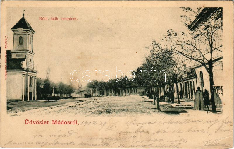1902 Módos, Jasa Tomic; Római katolikus templom, üzletek. Lustein Marc... https://www.darabanth.com/hu/504-Gyorsarveres/504.0/Kepeslapok/Vajdasag~2000006/1902-Modos-Jasa-Tomic-Romai-katolikus-templom-uzletek-Lustein-Marcus-kiadasa-Catholic-chur~II3424157