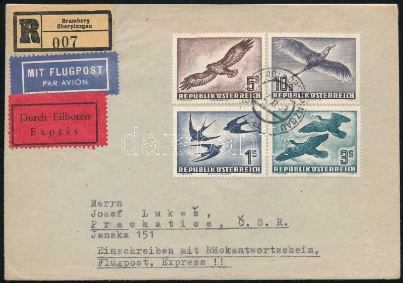 Leírás: Ausztria 1953 Madár sor ajánlott, légi, expressz levélen / Mi 984-987 on registered airmail express cover (Mi EUR 300,- ++)