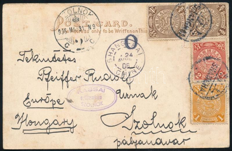 Leírás: Kína 1906 Képeslap Shanghaiból Szolnokra