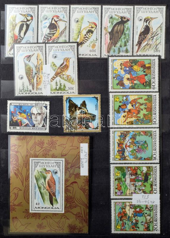 Leírás: Mongólia 1962-1987 511 klf bélyeg, köztük sorok és önálló értékek + 3 db blokk, 12 fekete lapos, jó minőségű A/4-es berakóban