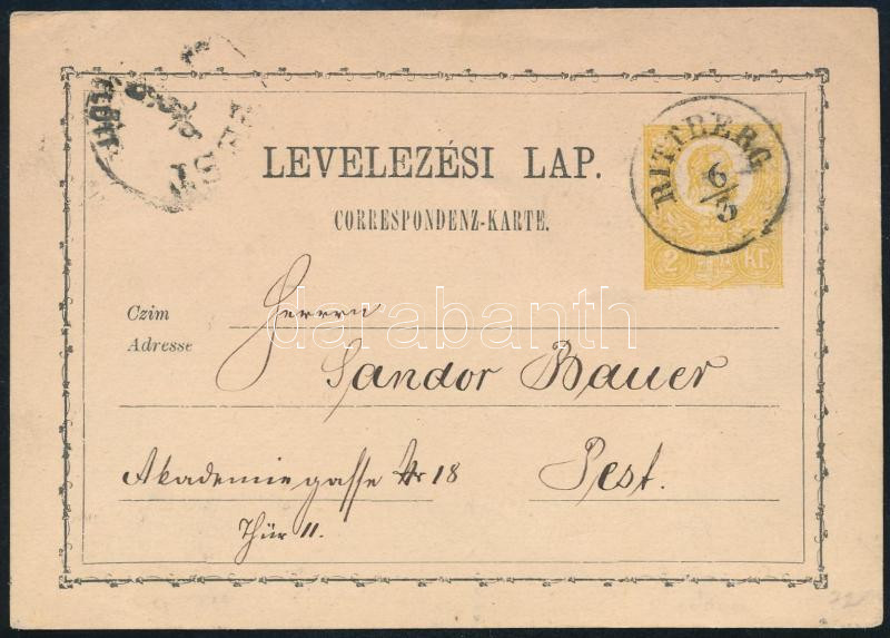 1872 2kr díjjegyes levelezőlap "RITTBERG" (Gudlin 400 p) https://www.darabanth.com/hu/504-Gyorsarveres/504.0/Kiemelt-magyar-filatelia-tetelek-es-gyujtemenyek/Egyes-magyar-kiadasok-rendkivul-alacsony-kikialtasi-aron~500001/1872-2kr-dijjegyes-levelezolap-RITTBERG-Gudlin-400-p~II3423735