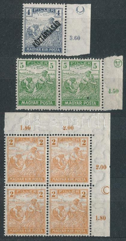 Leírás: 3 db Aratós érték az ívszélen nyomdatechnikai jelzésekkel