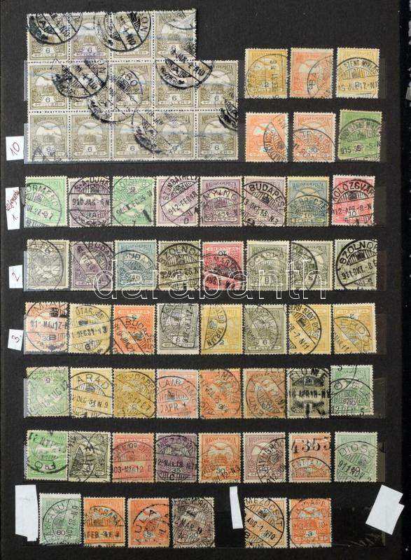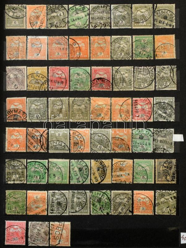 Leírás: 308 db Turul bélyeg olvasható hely-kelet bélyegzéssel, 10 fekete lapos, A/4-es berakó 5 oldalán