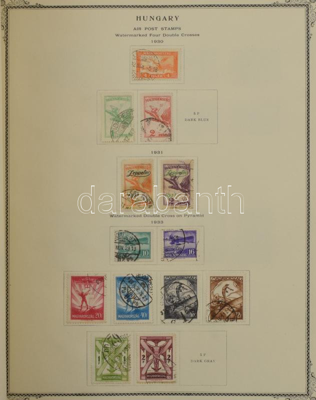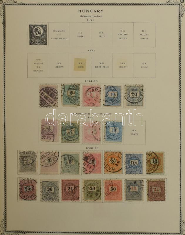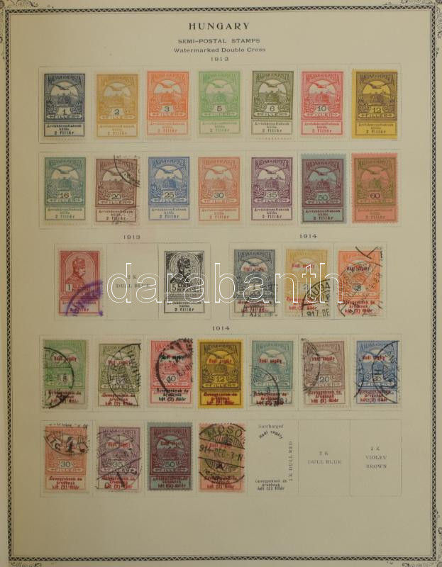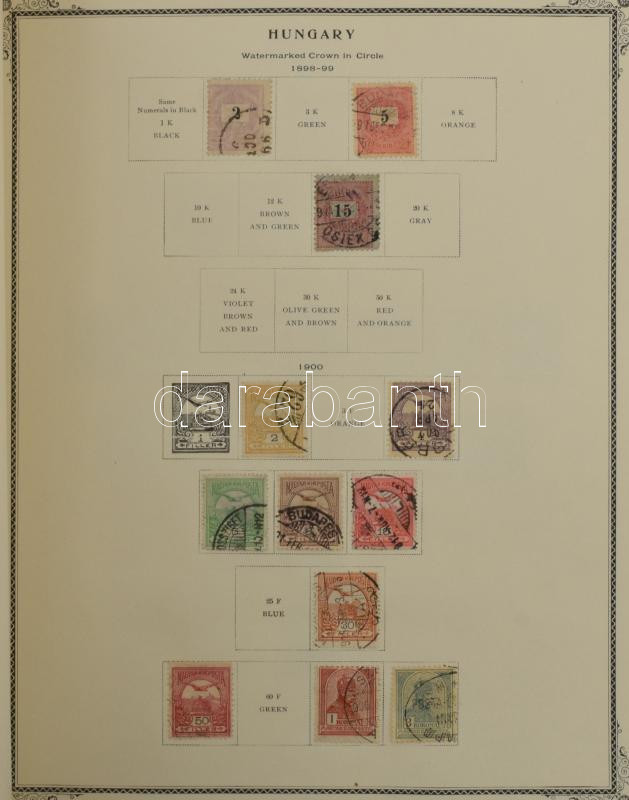 Leírás: Magyar gyűjtemény a Krajcárosoktól az 1930-as évekig jobbakkal, benne portók, sorok is, előnyomott Abria albumban