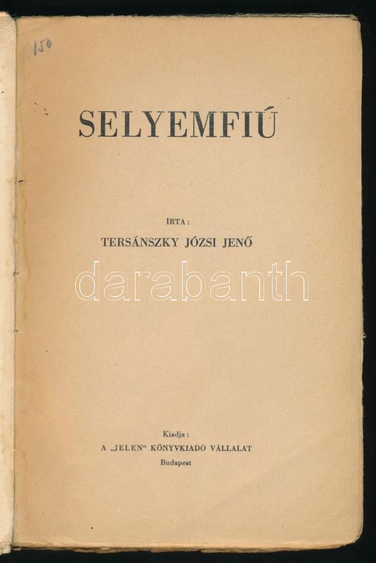 Tersánszky Józsi Jenő: Selyemfiú. Bp., [1942], Jelen, 160 p. A borító ... https://www.darabanth.com/hu/504-Gyorsarveres/504.0/Konyvek/Konyvek-Egyeb-ritkasagok~2500040/Tersanszky-Jozsi-Jeno-Selyemfiu-Bp-1942-Jelen-160-p-A-borito-Szarvas-Laszlo-munkaj~II3400662