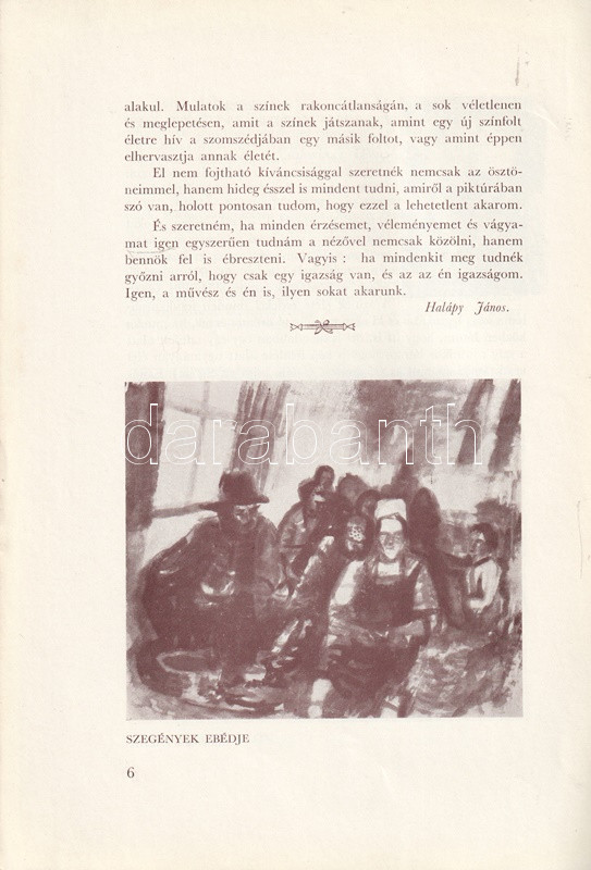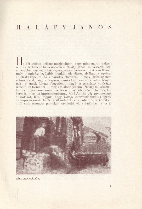 Halápy János autodidakta festőművész (1893-1960), a Képzőművészek Új Társasága (KUT) csoport egyik alapítója. Párizsi tartózkodás után 1929-től szerepelt hazai kiállításokon. A Balaton egyik festőjeként is ismert művész 1938. február 20-a és 1938. március 7-e között mutatkozott be a Fränkel Szalonban. A tárlaton a művész 32 festménye szerepelt; katalógusunkban hat alkotás reprodukciója szerepel, a festő munkásságát Rózsa Miklós méltatja.
