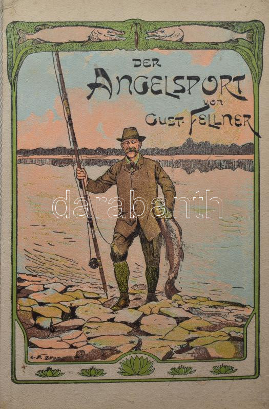 [Horgászatról szóló képes munka] Fellner, Gustav: Der Angelsport / Bibliothek für Sport und Spiel. Leipzig, [1905]. Grethlein & Co. 342p. 34p. + 2 kih t. Festett egészvászon kötésben