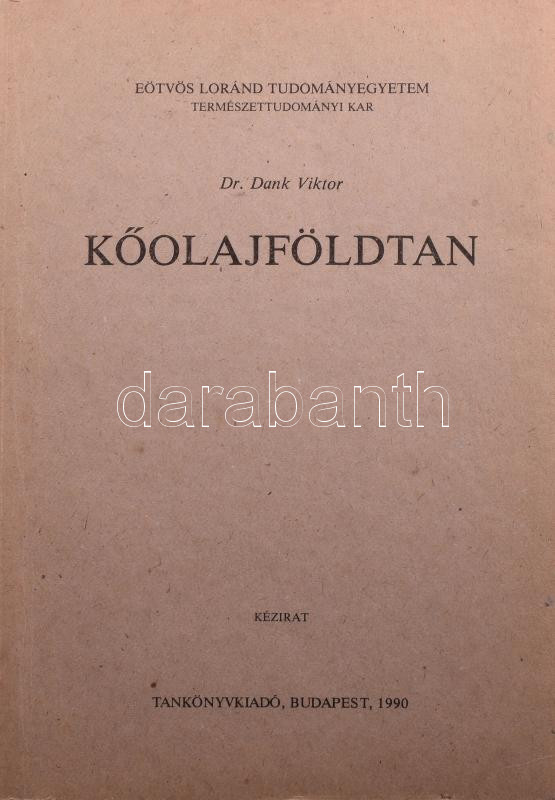 Dank Viktor: Kőolajföldtan. Eötvös Loránd Tudományegyetem Természettudományi Kar. (Kézirat). Bp., 1990, Tankönyvkiadó, 508 p. Kiadói papírkötés. Megjelent 129 példányban.