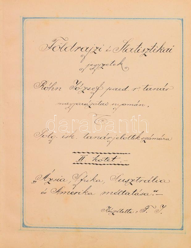 Európa országainak összehasonlító földrajza statisztikai adatok felhasználásával. Róhn József tanár előadásai nyomán I-II. Félvászon kötés, kissé kopottas állapotban.
