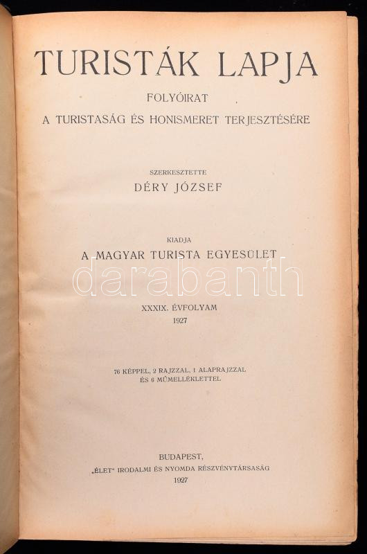 1927-1929 Turisták Lapja. Folyóirat a turistaság és honismeret terjesz... https://www.darabanth.com/hu/504-Gyorsarveres/504.0/Konyvek/Konyvek-Utazas-helytortenet~2500021/1927-1929-Turistak-Lapja-Folyoirat-a-turistasag-es-honismeret-terjesztesere-Szerk-Dery-JC3~II3422706