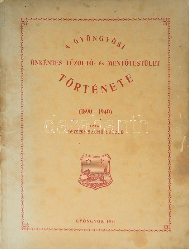 Leírás: Dezséri Bachó László: A Gyöngyösi Önkéntes Tűzoltó- és Mentőegyesület története (1890-1940). Gyöngyös, 1941. Kiadói papírkötés, széteső állapotban.
