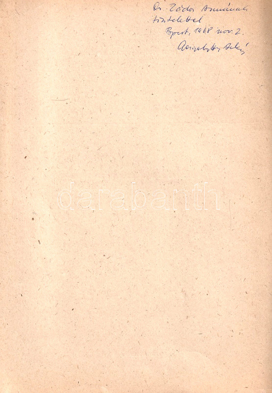 Dedikált: "dr. Zádor Annának tisztelettel: Gergelyffy András. Bpest, 1968. nov. 2".