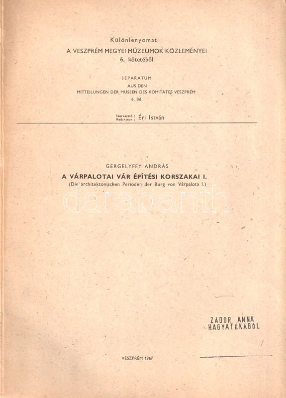 Veszprém, 1967. (Ny. n.) 259-278 p. Egyetlen önálló kiadás.