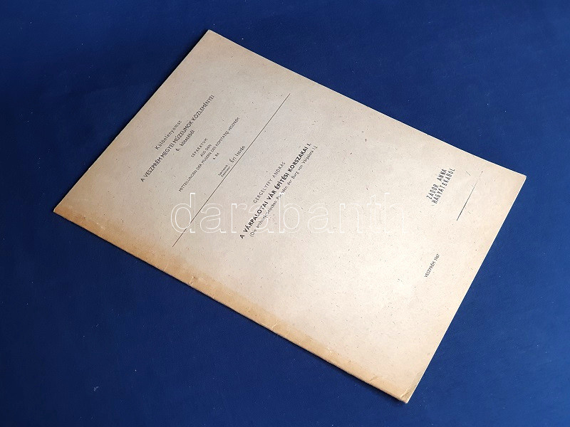 Gergelyffy András (1935-2005) művészettörténész szövegközti felvételekkel, illetve alaprajzokkal illusztrált kötete az Újlaki-család által épített XIV. századi vár, Várpalota építésének és feltárásának történetébe avat be. Az Újlakiak a közeli, a dinasztia számára szűknek bizonyult Bátorkő várát elhagyva a XIV. században emelték várkastélyukat, mely számos átalakítást, és tulajdonosváltást követően a török időkben a végvári harcok fontos területévé lett. A vár egy részét a Rákóczi-szabadságharc után elbontották, a 20. század elejére pedig erősen romossá vált. Az első borítófedélen hagyatéki bélyegzés, "Zádor Anna hagyatékából" felirattal.
