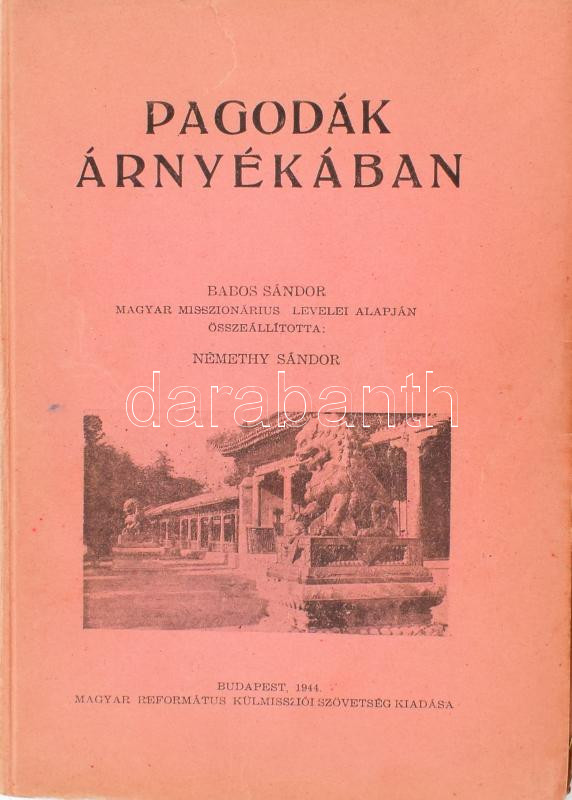 Némethy Sándor: Pagodák árnyékában. Bp., 1944, Magyar Református Külmi... https://www.darabanth.com/hu/504-Gyorsarveres/504.0/Konyvek/Konyvek-Utazas-helytortenet~2500021/Nemethy-Sandor-Pagodak-arnyekaban-Bp-1944-Magyar-Reformatus-Kulmisszio-Kiadoi-papir~II3422883