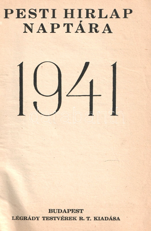 A Légrády Testvérek tulajdonában levő konzervatív hírlap (1878-1944) a korszak egyik legnépszerűbb napilapjaként az első világháborúban hazafias irányvonalat képviselt, a főszerkesztő, Légrády Ottó pedig a kezdetektől a trianoni békediktátum elszánt ellenfele volt: érthető, hogy az 1938-tól meginduló országgyarapodásokat nagy örömmel üdvözölte. 1941. évi naptárának csaknem egésze Észak-Erdély visszatérését ünnepli. Évkönyvünk különös fénytörésben mutatja a visszanyert országrész demográfiai statisztikáit, méltatja kultúrkincseit és természeti örökségét, áttekinti Észak-Erdély idegenben töltött évtizedeit, fotóanyagát Észak-Erdélyből, szépirodalmi anyagát pedig kimondottan erdélyi kötődésű szépíróktól veszi (Kós Károly, Nyirő József, Tamási Áron, Wass Albert). Az év végén összeállított kiadvány 1940 november elejéig tekinti át az elmúlt év magyar és világpolitikai, hadi eseményeit, oldalszámozáson belül néhány hadműveleti vázlattal.