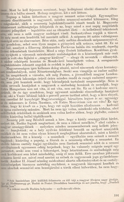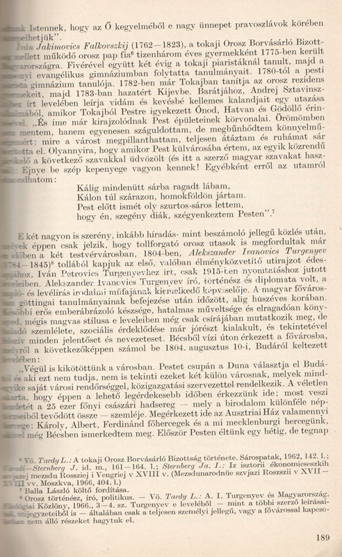 Tardy Lajos (1914-1990) szovjet hadifogságot megjárt művelődéstörténész, műfordító, az Országos Széchényi Könyvtár kutatója. Rövid munkájában a XVIII-XIX. századi orosz látogatók magyarországi megfigyeléseiből tesz közzé korábban publikálatlan részleteket, társadalomtörténeti kommentárokkal. A hazánkba látogató orosz szerzetesek, kereskedelmi utazók és szépírók munkái az 1720-as évektől a késő reformkorig terjedő időszakban keletkeztek.