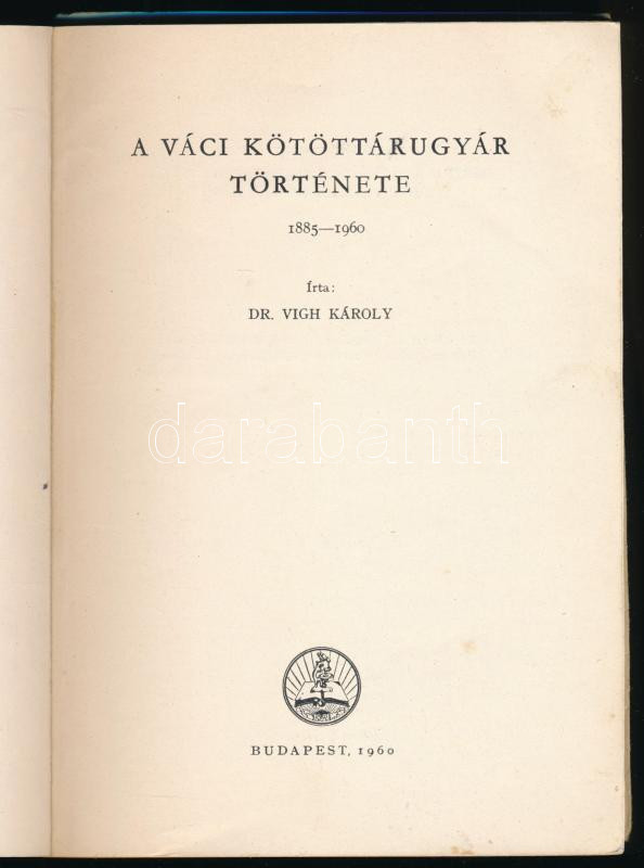 Vígh Károly: A váci kötöttárugyár története Budapest, 1960. 99p. Bejeg... https://www.darabanth.com/hu/504-Gyorsarveres/504.0/Konyvek/Konyvek-Utazas-helytortenet~2500021/Vigh-Karoly-A-vaci-kotottarugyar-tortenete-Budapest-1960-99p-Bejegyzesekkel-papirbo~II3413203