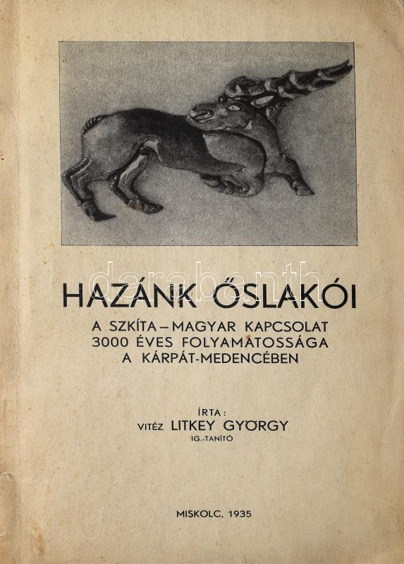 Vitéz Litkey György: Hazánk őslakói. A szkíta-magyar kapcsolat 3000 éves folyamatossága a Kárpát-medencében. DEDIKÁLT! Miskolc, 1935. Kiadói papírkötés, kissé kopottas állapotban.