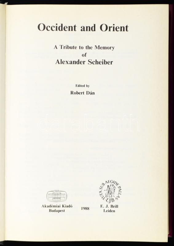 Dán, Robert: Occident and Orient. A Tribute to the Memory of Alexander Scheiber. Bp., 1988, Akadémiai. Kiadói egészvászon kötés, papír védőborítóval, jó állapotban.