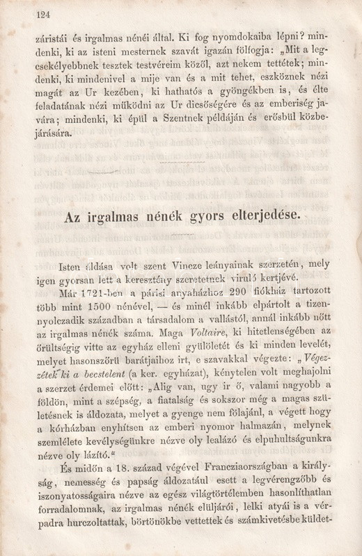 Knauz Nándor (1831-1898) katolikus pap, szemináriumi nevelő, történész, főegyházmegyei és érseki levéltárnok. Az Esztergomban megtelepedett különféle szerzetesrendek szerteágazó történetét kidolgozó munka utolsó fejezetében a XVII. századi francia rendalapító, Páli Szent Vince életét méltatja. A történeti összefoglaló iskolaalapítási alkalomból készült: az esztergomi érsek 1865-ben hívta székvárosába hívta a Pauli Szent Vince Leányai irgalmas rend tanító nővéreit. Az 1865-ben felállított nőnevelő intézet a közoktatás céljait szolgálta. Példányunk a két kőnyomatú táblát nem tartalmazza.