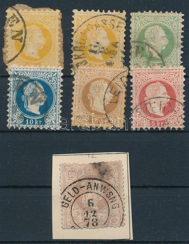 Leírás: 1867 7 db forgalmi bélyeg, finom nyomat (50kr foghiba / perf. fault)