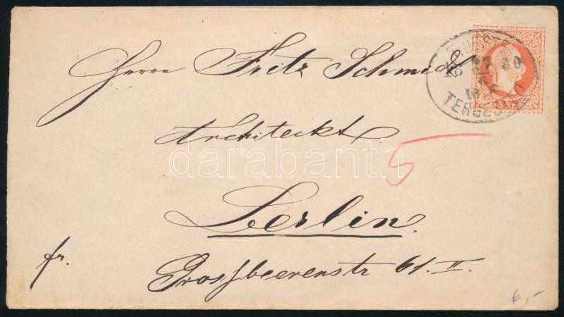 1880 5kr díjjegyes levél "TRIESTE / TERGESTEO"