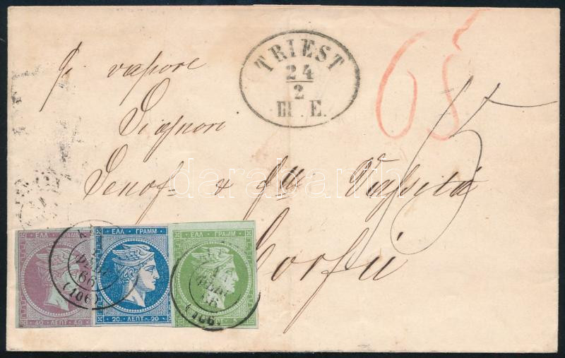 1866 5L + 20L + 40L bélyegekkel portózott levél Triesztből Korfura. Ri... https://www.darabanth.com/hu/504-Gyorsarveres/504.0/Kulfoldi-filatelia-es-postatortenet/Gorogorszag~3000094/1866-5L-plus-20L-plus-40L-belyegekkel-portozott-level-Triesztbol-Korfura-Ritka-darab~II3187678