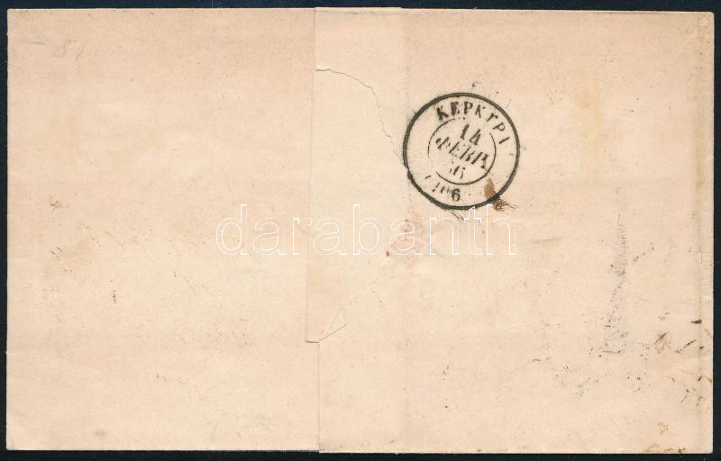 Leírás: 1866 5L + 20L + 40L bélyegekkel portózott levél Triesztből Korfura. Ritka darab!!
