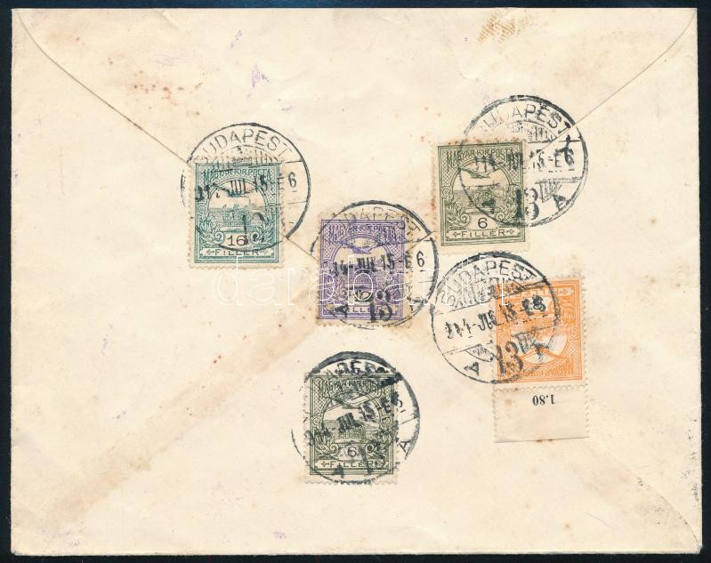 Leírás: 1914 Ajánlott levél Bécsbe 5 db Turul bélyeggel