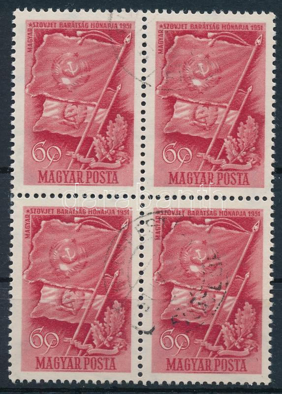1951 Magyar-szovjet barátság 60f négyestömb számvízjellel https://www.darabanth.com/hu/504-Gyorsarveres/504.0/Magyar-filatelia-es-postatortenet/1946-1956-kozotti-kiadasok~500052/1951-Magyar-szovjet-baratsag-60f-negyestomb-szamvizjellel~II3424562