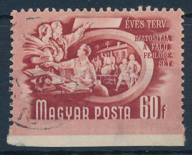 1951 Ötéves terv II. 60f alul vágott https://www.darabanth.com/hu/504-Gyorsarveres/504.0/Magyar-filatelia-es-postatortenet/1946-1956-kozotti-kiadasok~500052/1951-Oteves-terv-II-60f-alul-vagott~II2938566