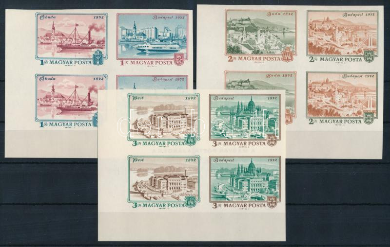 1972 Óbuda-Buda-Pest polgármesteri ajándék vágott négyestömb sor (140.000) (2Ft ujjlenyomat) / Mi 2805 BI-2810 BI imperforate blocks of 4, present of the Post (fingerprint)