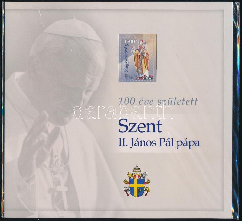 2020 100 éve született Szent II. János Pál pápa bélyegszett https://www.darabanth.com/hu/504-Gyorsarveres/504.0/Magyar-filatelia-es-postatortenet/2020-tol-napjainkig~500061/2020-100-eve-szuletett-Szent-II-Janos-Pal-papa-belyegszett~II3425272